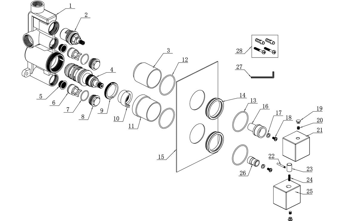 - This product is a replacement for DICM0162 Kuba Thermostatic Single Outlet Twin Shower Valve which is now discontinued