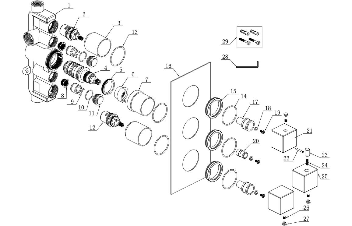 - This product is a replacement for DICM0168 Kuba Thermostatic Two Outlet Triple Shower Valve which is now discontinued