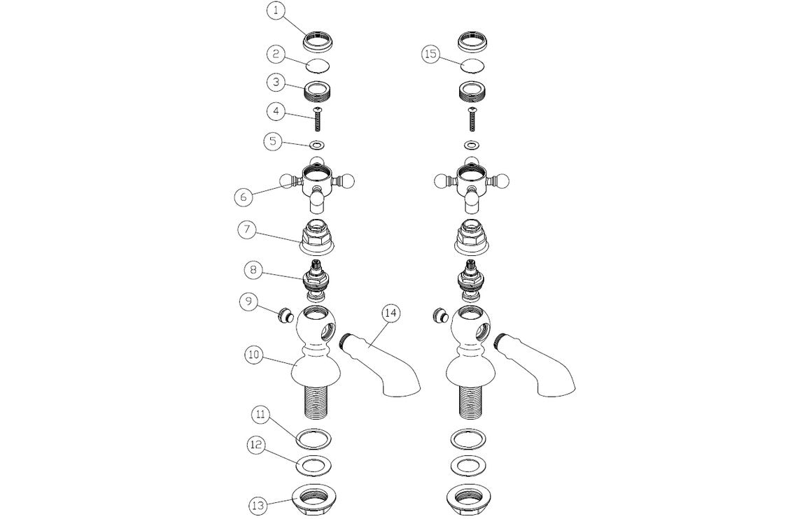 - Low Pressure Deck Mounted Brushed Brass Bath Taps